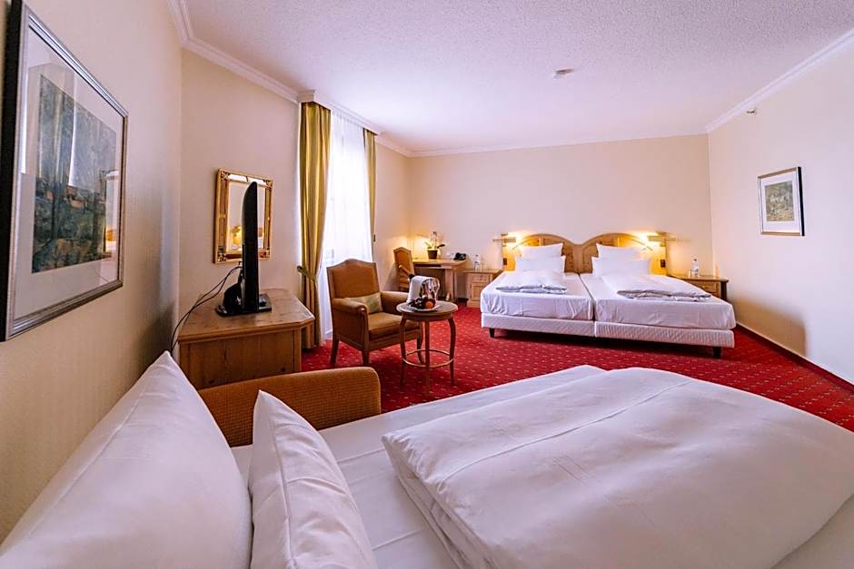 The quadruple room provides soundproof walls, a mini-bar, as well as a private bathroom featuring a bath and a shower. The quadruple room features carpeted floors, a seating area with a flat-screen TV with satellite channels, a wardrobe, a safe deposit box, as well as heating. The unit offers 2 beds.